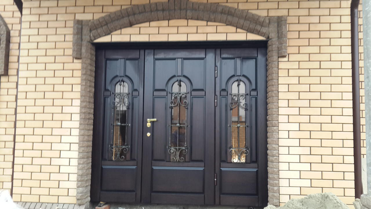 Различные декоративные элементы в виде кованых элементов, резных накладок, филенок украшают полотно и придают ему вид художественного изделия ручной работы.